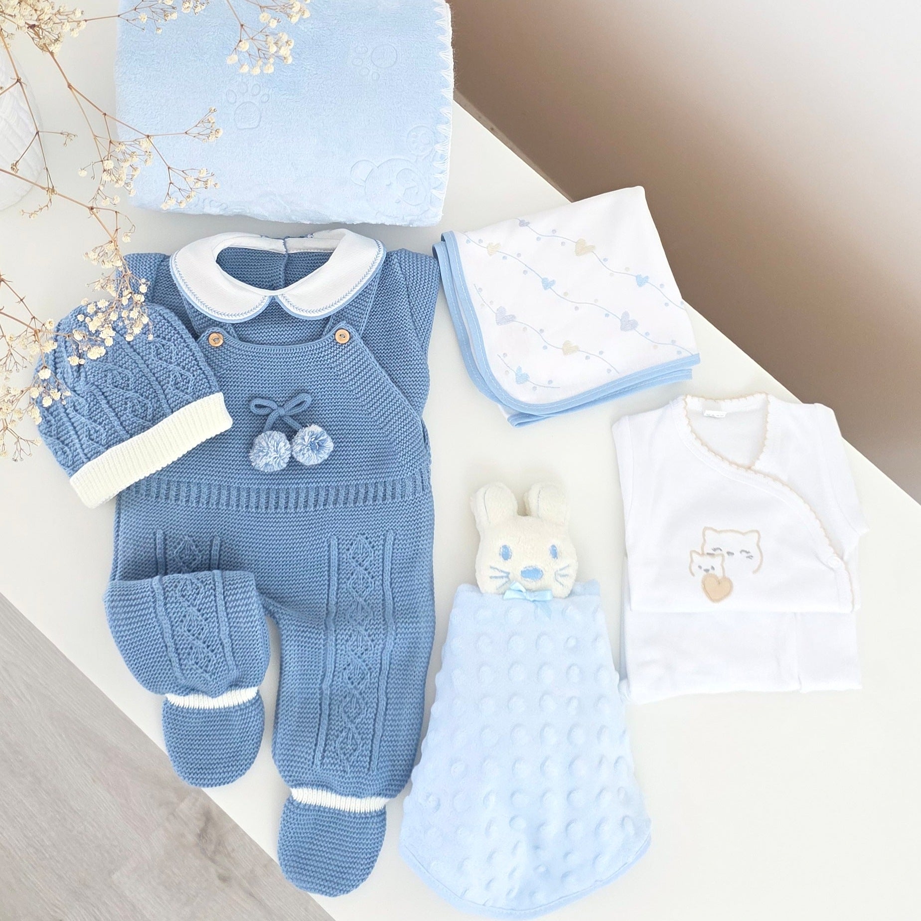 Box constituída Fralda de pano, Mantinha polar, Doudou , Body cardado, Calças cardadas, Conjunto de Jardineira, Camisola e Gorro